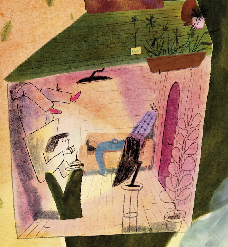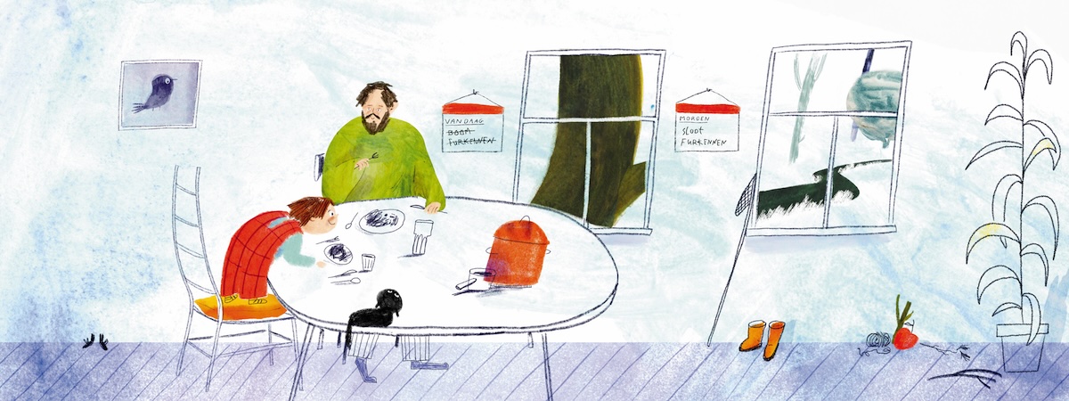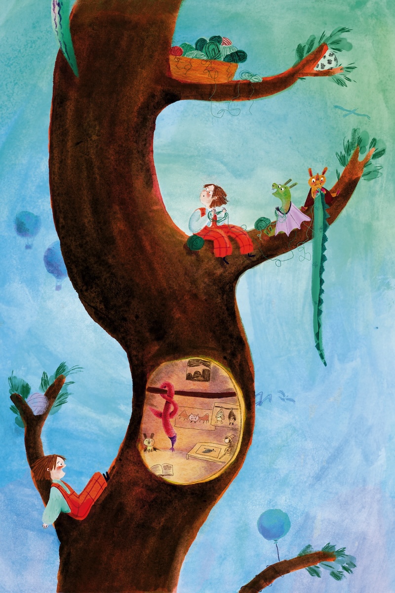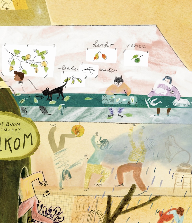 Voor het huis staat een boom. Een hele hoge boom. Jip loopt al jaren elke dag langs de boom en kijkt nieuwsgierig naar boven.